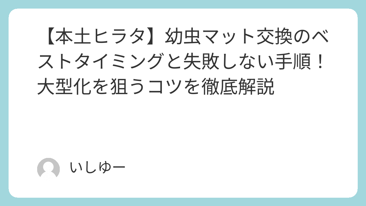 この記事では、本土ヒラタを70mmオーバーの大型に育て、無事に羽化させるためのマット交換のベストタイミングと具体的な手順を、初心者の方にも分かりやすく解説します。